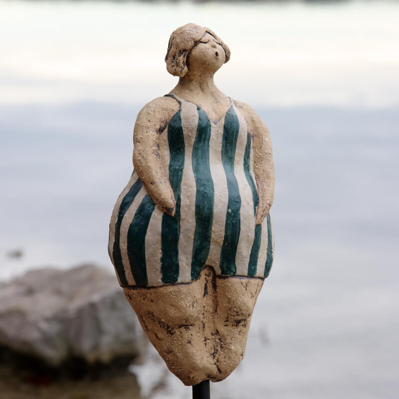 Die prachtvollen und fröhlichen Badefiguren, präsentieren uns voller Stolz und Elan Ihre Weiblichkeit. Sie strahlen vor Schönheit, Liebe, Gelassenheit und Lebensbejahung!
