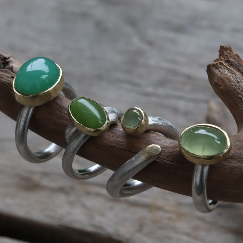 Ein Zwei-Finger-Ring, der Seerosenblätter widerspiegeln vermag oder sehr individuelle Schmuckstücke, wie zwei Freundschaftsringe, die wie Puzzle ineinander passen und eine Einheit bilden, sowie ein Meditationsring sind nur ein Einblick in mein Schaffen.